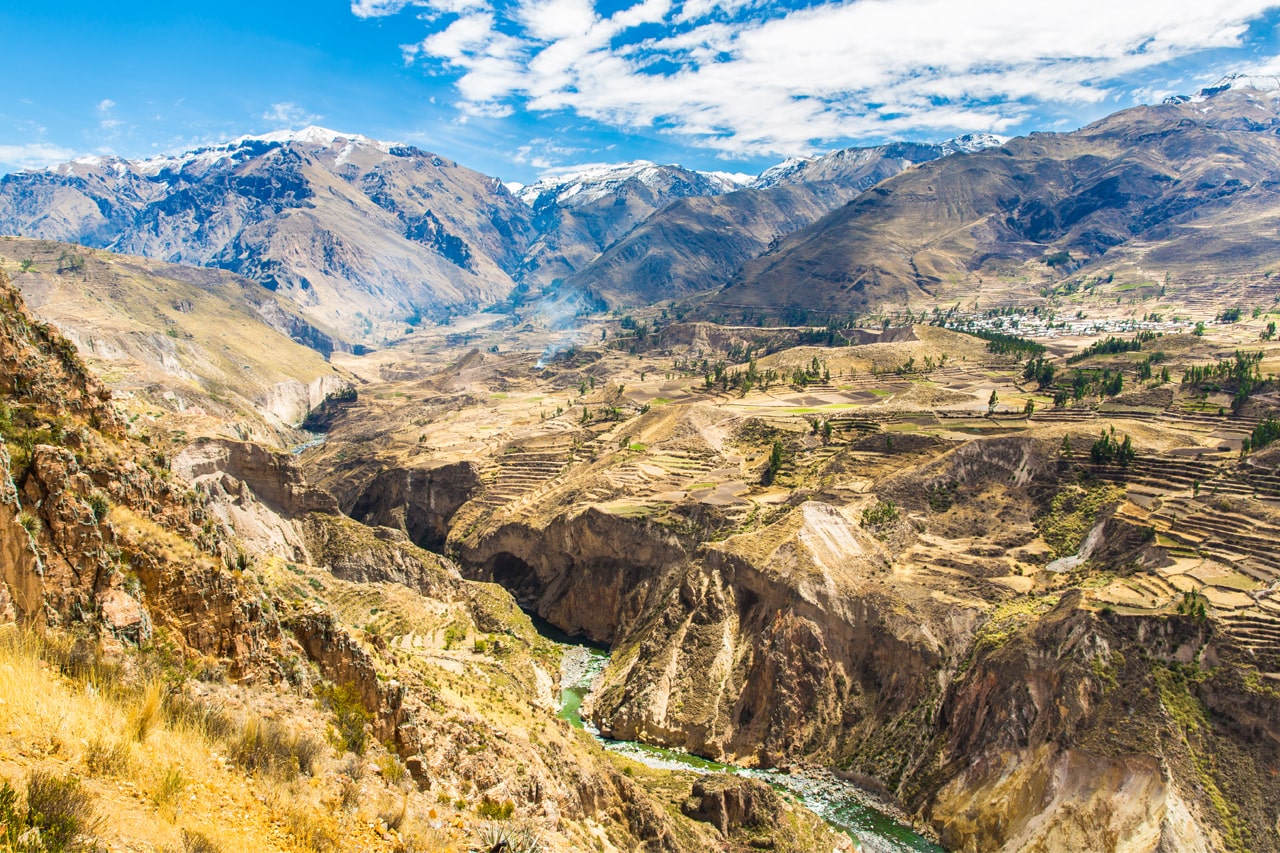 A visit to Colca offers views of rare, wild camels such as vicuñas and guanacos as well as views of Andean Condors flying at close range almost every morning at a specific overlook in the valley. Two indigenous highland tribes still inhabit the valley and maintain many of their colorful traditions.